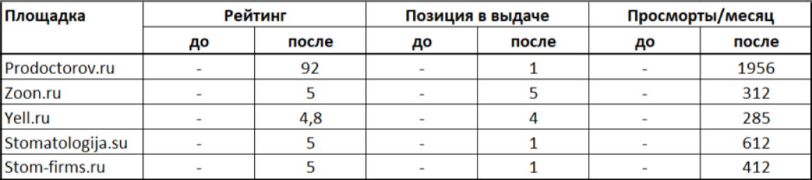 При открытии новой стоматологии возникает проблема с репутацией. Даже при налаженной системе сбора отзывов, ждать естественного прироста можно очень долго (от 6 месяцев до бесконечности).