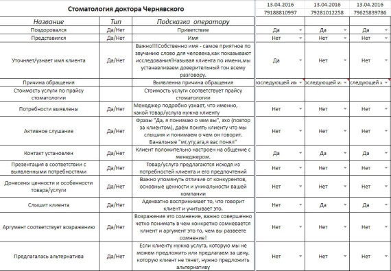 Через месяц был составлен список часто задаваемых вопросов, первый скрипт разговора и чек-лист для администратора.